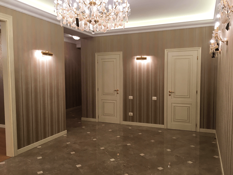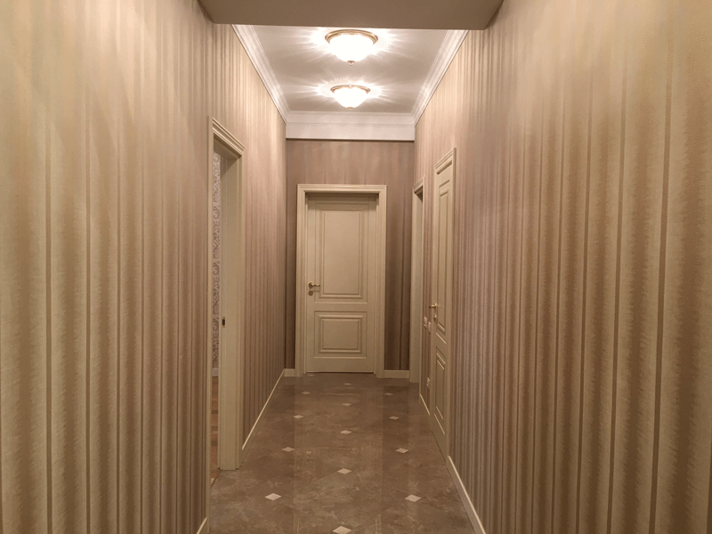 Bu mənzilin interyeri incə krem tonlarında yerinə yetirilib – meydan oxumayan və eyni zamanda dəbdəbəli. Burada dəbdən düşməyən klassikanın, yenə də müasir əsasla həyata keçirilən ənənəvi motivlərin dərin təsiri hiss olunur